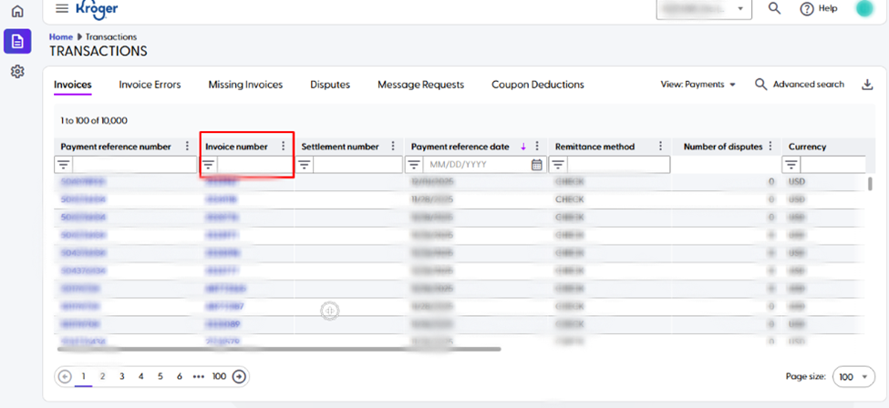 - Navigate to Transactions and search for the invoice tied to the deduction. Deduction invoices include “-CM”.
